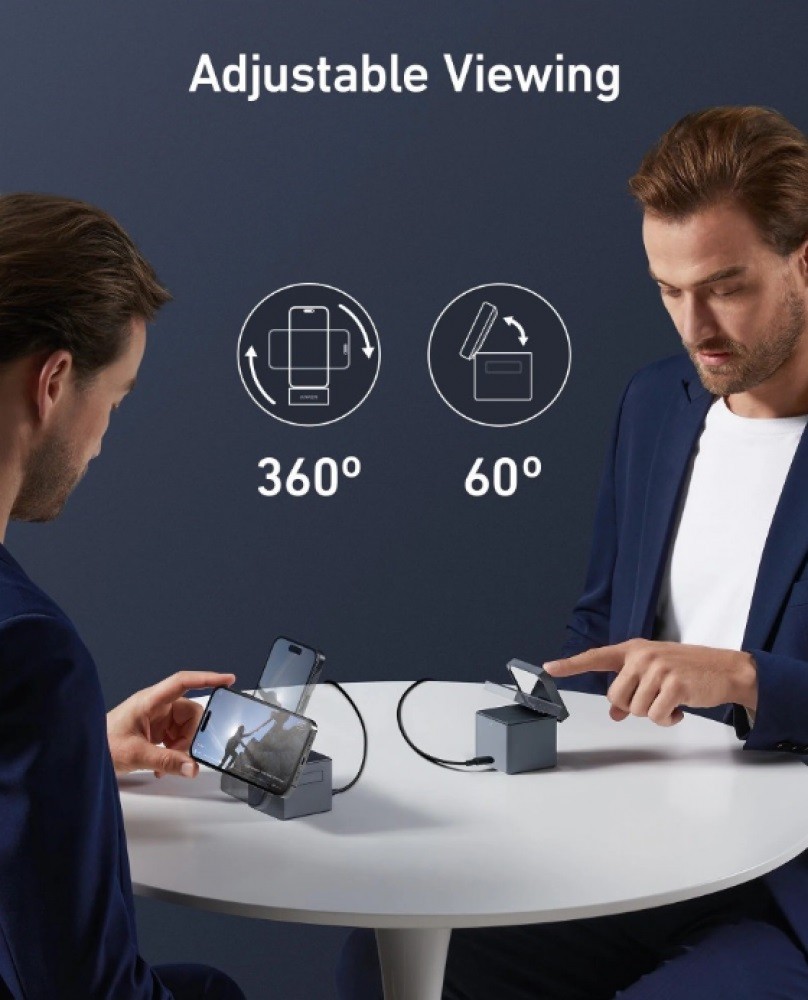 - تصميم مكعب مبتكر: يجمع شاحن انكر ماج سيف بين وظائف الشحن اللاسلكي لأجهزة iPhone Apple Watch وAirPods في جهاز واحد، مما يوفر حلاً متكاملاً.