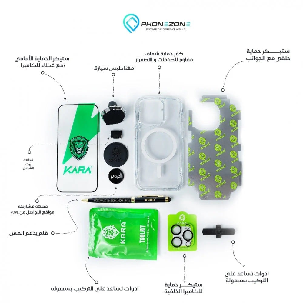 احصل على بكج حماية كارا ايفون 15 ، 15 برو، و15 برو ماكس المضاعف من كارا 12 في 1 الذي