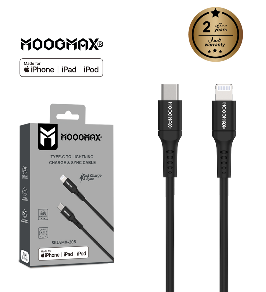 سرعة شحن فائقة: يدعم كيبل موج ماكس MX-205 الشحن السريع ليتيح لك إعادة شحن أجهزتك بكفاءة وفي وقت قياسي.