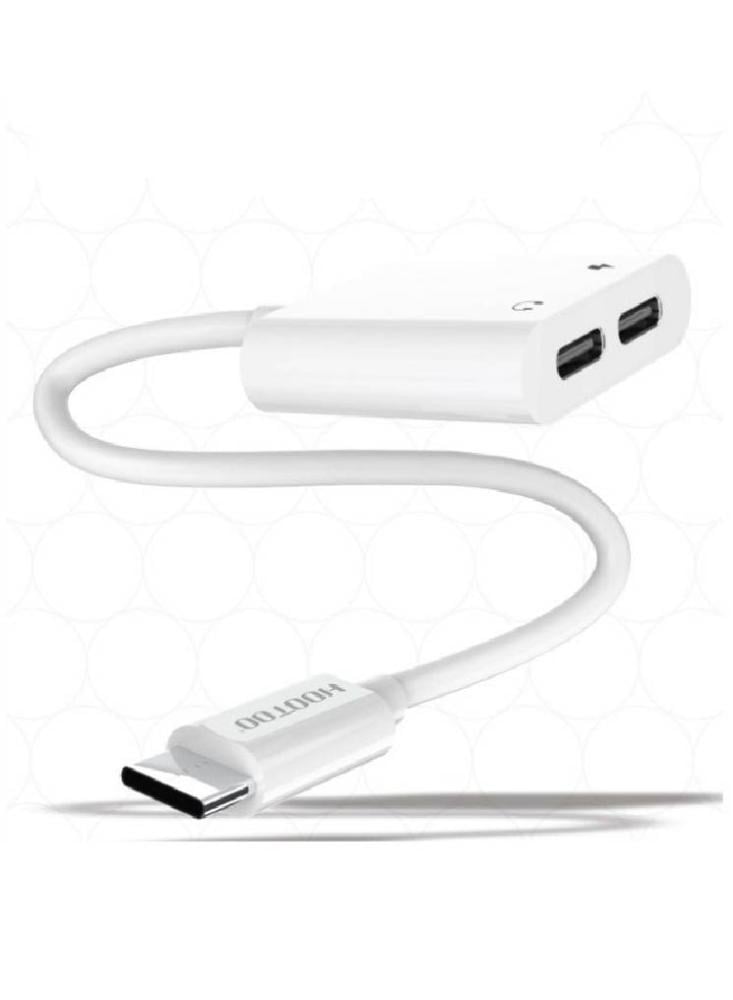 محول سماعه وشاحن هو الحل الذكي الذي يجمع بين منفذ شحن سريع ومنفذ سماعة تايب سي في تصميم مدمج ومتين.